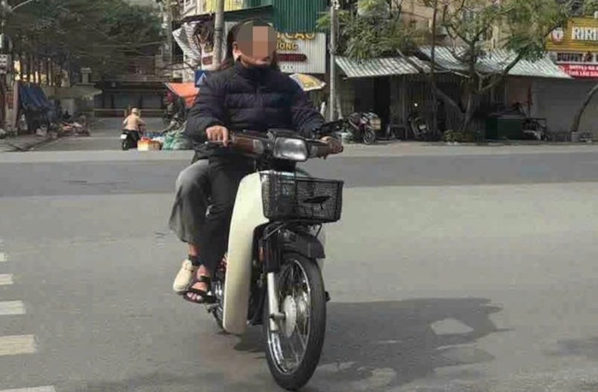 Hình ảnh ông H. lái xe máy không đội mũ bảo hiểm.