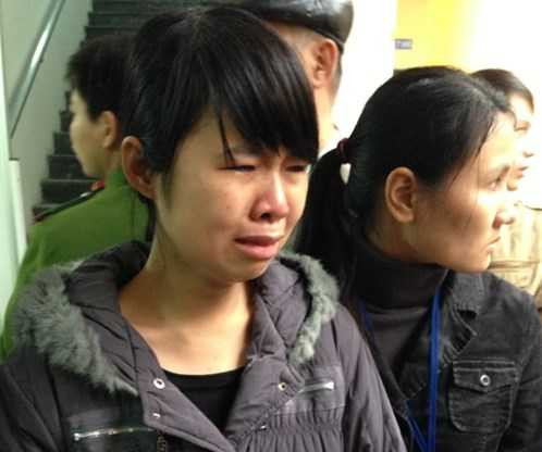Bị cáo Nguyễn Thị Hồng Nhung (24 tuổi) khóc nức nở tại phiên tòa