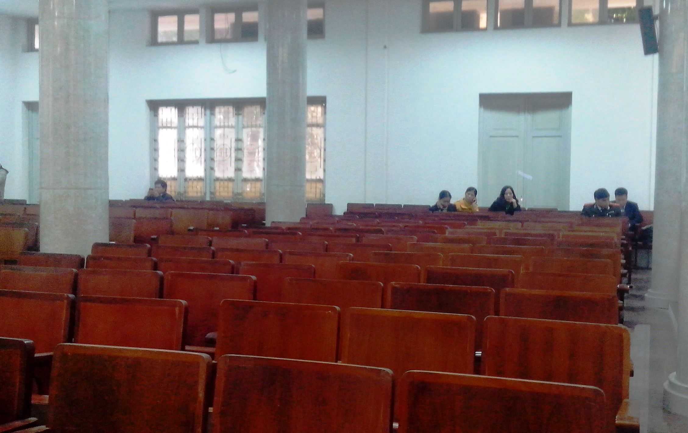 13h, phòng xử án vắng tanh, chỉ còn lại người tố cáo và người cảnh sát bảo vệ ngồi lại…