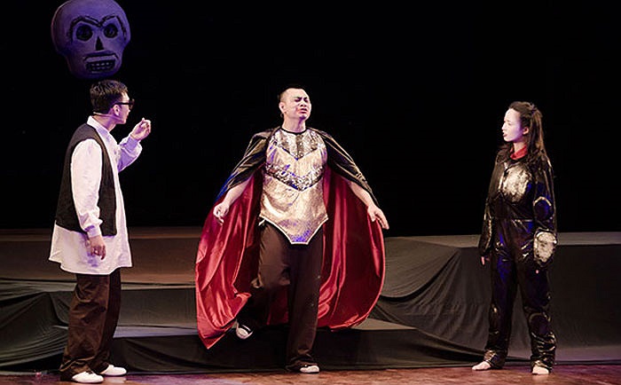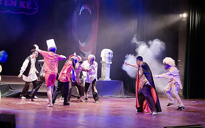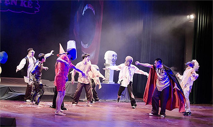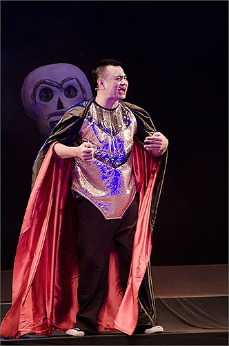 Thành Trung trong kiểu trang điểm gớm giếc. Chương trình sẽ kéo dài đến 2/6. (Ảnh: Lê Chí Linh)