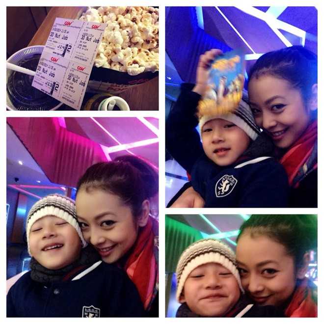 | Valentine 2014 là dịp lễ đặc biệt của Jennifer Phạm. Chưa năm nào cô được ăn Tết, tổ chức sinh nhật cho Bảo Nam... ở VIệt Nam nhộn nhịp như năm nay. Đăng tải bức hình đưa cậu cả đi xem phim đúng lễ Tình nhân và cũng là sinh nhật Bảo Nam,Hoa hậu châu Á tại Mỹnhấn mạnh: "Valentine's day movie with my love". |