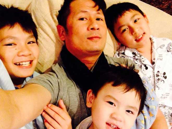 | Cũng giống Jennifer Phạm, Bằng Kiều hào hứng khoe ảnh chụp cùng ba cậu quý tử trên trang cá nhân. Anh khẳng định: "Và đây: Valentine's day của tôi". |