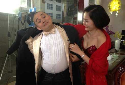 | Xuân Hinh và diễn viên Lan Phương trong một tiểu phẩm đóng chung đĩa hài Tết năm nay. |
