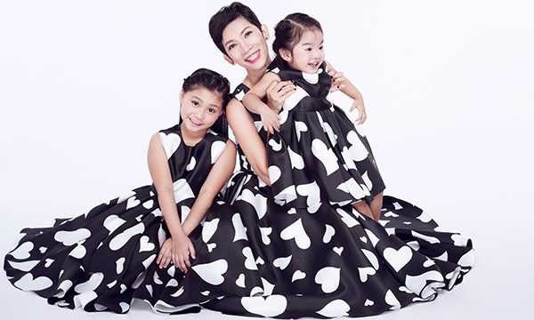Diện trang phục giống nhau trong bộ ảnh mới, ba mẹ con Xuân Lan nhanh chóng chiếm được tình cảm người hâm mộ. Người đẹp liên tục dành những nụ cười rạng rỡ, thoải mái khi ở cạnh hai con.
