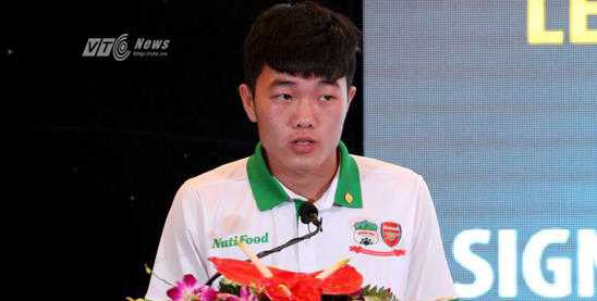 | Xuân Trường phát biểu tại buổi lễ ký hợp đồng (Ảnh: Hoàng Tùng) |