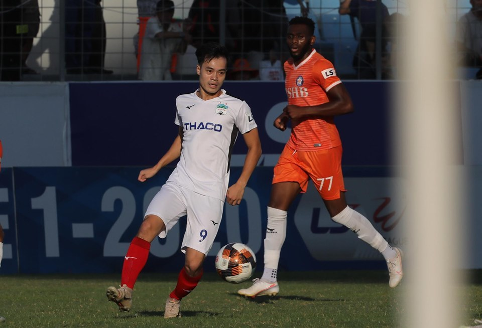Hai đội tạo ra thế trận cân bằng trong hiệp một. HAGL mở tỉ số ở phút 29 với pha lập công có phần may mắn của Văn Toàn. Đây mới là bàn thắng đầu tiên của tiền đạo này ở V-League 2020.