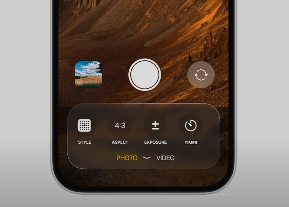 Một điểm nổi bật trong thiết kế được đồn đoán của ứng dụng camera trên iOS 19 chính là khung ngắm (viewfinder) chiếm phần lớn giao diện màn hình, kết hợp với việc tinh gọn những nút điều khiển trong phần cài đặt sẽ giúp trải nghiệm sử dụng hàng ngày trở nên thân thiện hơn.