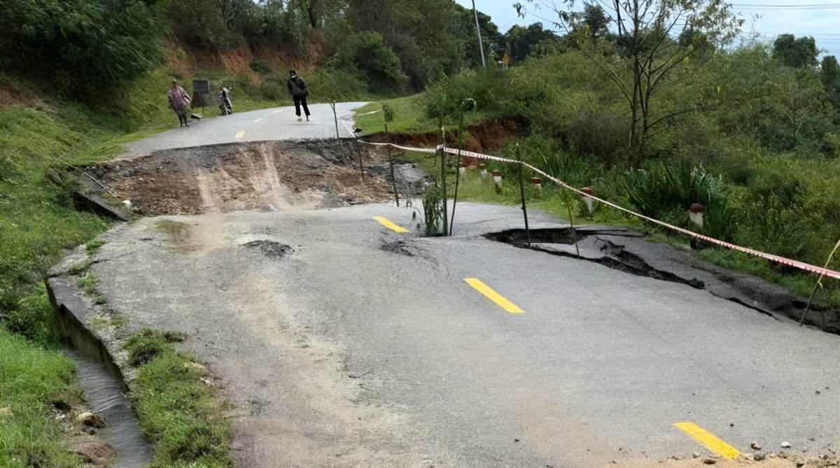 Theo ông Huy, do ảnh hưởng mưa lớn, khoảng một tuần nay, tại vị trí Km168+900 (thuộc Quốc lộ 40B) đã bị sụt lún. Qua theo dõi 2 ngày qua, điểm sụt lún này bất ngờ có diễn biến nặng hơn. Chiều dài đoạn đường bị lún trên 20m. Mặt đường lún sâu 0,6m đến 1m.