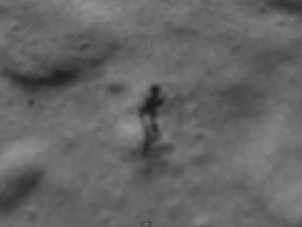 Người này khẳng định mình đã thấy bóng của một người ngoài hành tinh ẩn trong một miệng hố sâu từ các bức hình trên Google Moon (ảnh vệ tinh bề mặt Mặt Trăng, tương tự như Google Earth).