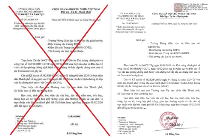 Văn bản giả mạo sao chép nội dung của văn bản số 291/GDĐT-VP của Sở GD&ĐT TP.HCM thông báo về việc cho học sinh nghỉ phòng dịch nCoV và thay đổi thời gian ngày nghỉ.