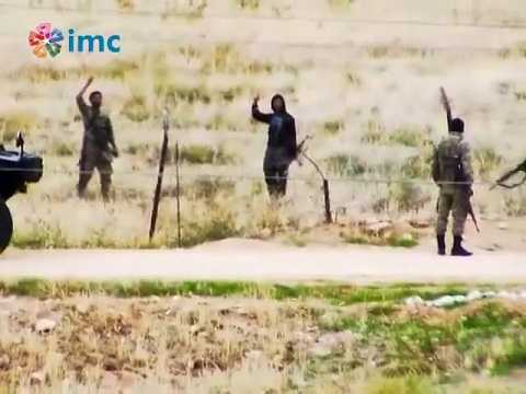 Sau đó chiếc xe quân sự chở nhiều binh lính được trang bị vũ khí xuất hiện. Những người này xuống xe và nói chuyện với 2 tên chiến binh. Sau cùng 2 tên này trở lại phía Syria và hét “Allahu Akbar”.