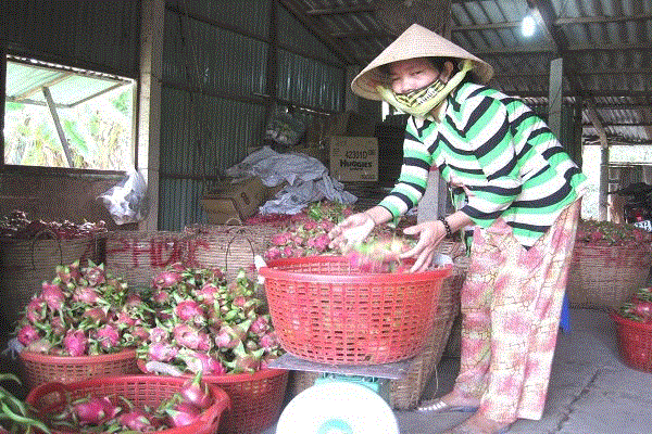 Bà Trang cho biết, trước Tết, các nhà kho đặt cọc mua thanh long của nông dân với giá 30.000-32.000 đồng/kg, nhưng hiện nay do tình hình tiêu thụ sang Trung Quốc rất khó khăn nên giá bán cũng giảm mạnh và hiện chỉ còn 5.000 đồng/kg.