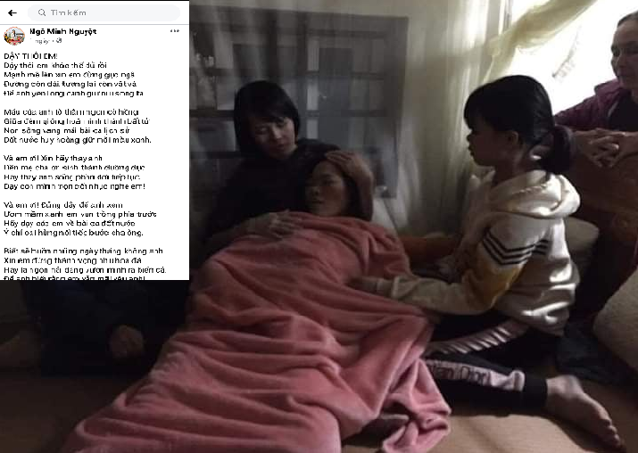 Chứng kiến trước nỗi đau mất mát quá lớn của chị Hoa, cô giáo Ngô Minh Nguyệt (đồng nghiệp của chị Hoa) đã viết bài thơ Dậy thôi em để động viên, chia sẻ giúp chị Hoa vực dậy tinh thần, lo cho các con và gia đình.