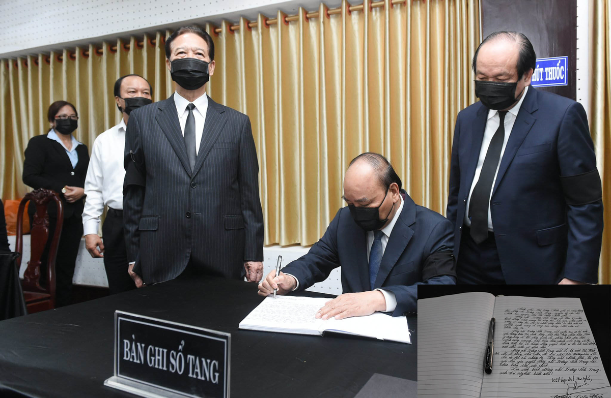 Xin chia buồn sâu sắc với Chị 2, các cháu, cùng gia quyến”- Nguyễn Tấn Dũng, nguyên UVBCT, nguyên Thủ tướng Chính phủ nước Cộng hòa xã hội chủ nghĩa Việt Nam.