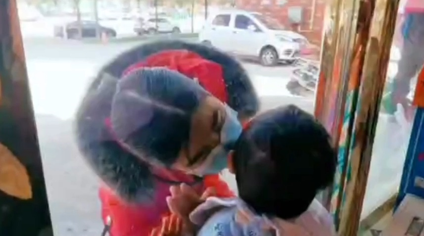 Video: Nữ y tá hôn con nhỏ qua cửa kính