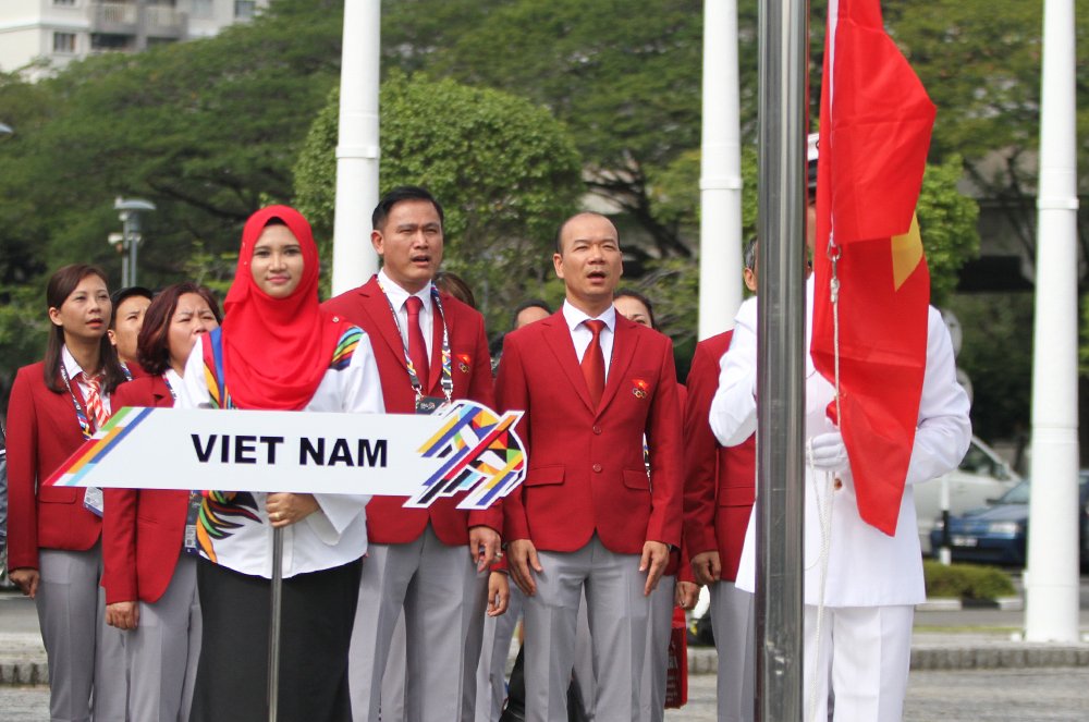 Quốc kỳ Việt Nam được kéo lên. Đoàn Thể thao Việt Nam chính thức gia nhập Đại hội Thể thao Đông Nam Á lần thứ 29.