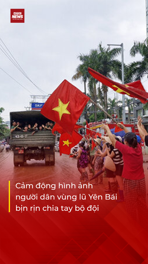 Xúc động hình ảnh người dân vùng lũ Yên Bái bịn rịn chia tay bộ đội