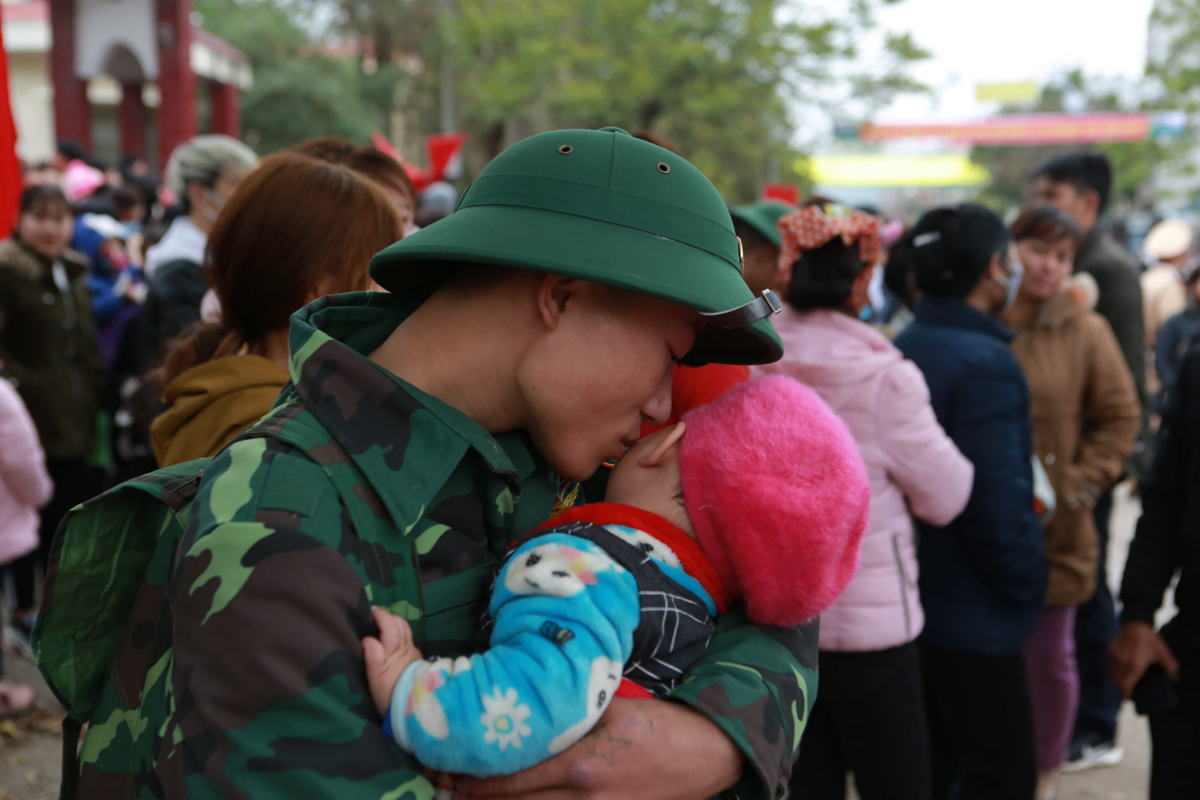 Bức ảnh người lính trẻ hôn tạm biệt con gái nhỏ trong ngày nhập ngũ được đăng tải và chia sẻ rộng rãi trên mạng xã hội chạm đến trái tim của bất cứ ai.