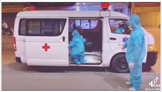 "Nhìn hình dáng nhỏ bé trong trang phục phòng hộ cá nhân rộng thùng thình, một mình leo lên chiếc xe cấp cứu, thương vô cùng!", là dòng cảm xúc đặc biệt của điều dưỡng Nguyễn Thanh Trúc, nhân viên phòng chống dịch Trạm Y tế xã Phong Phú, huyện Bình Chánh, TP.HCM (người quay clip) về hình ảnh bé gái nhỏ 5 tuổi, một mình lên xe y tế của Bệnh viện huyện Bình Chánh để đến Bệnh viện Trưng Vương điều trị COVID-19.