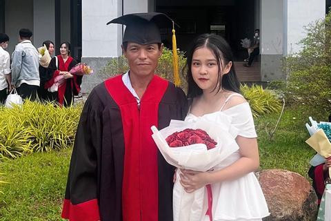 Khoảnh khắc Thy khoác áo, đội mũ cử nhân cho cha được một người thân quay lại video, sau đó lan tỏa trên mạng xã hội.