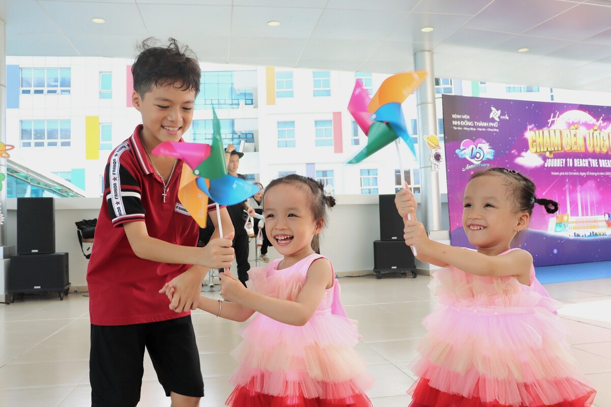Sáng 1/6, Bệnh viện Nhi đồng Thành phố (TP.HCM) tổ chức lễ kỷ niệm 5 năm hoạt động. Dịp này, cặp song sinh Trúc Nhi - Diệu Nhi đã quay lại hội ngộ cùng các y bác sỹ sau 3 năm được phẫu thuật tách rời.