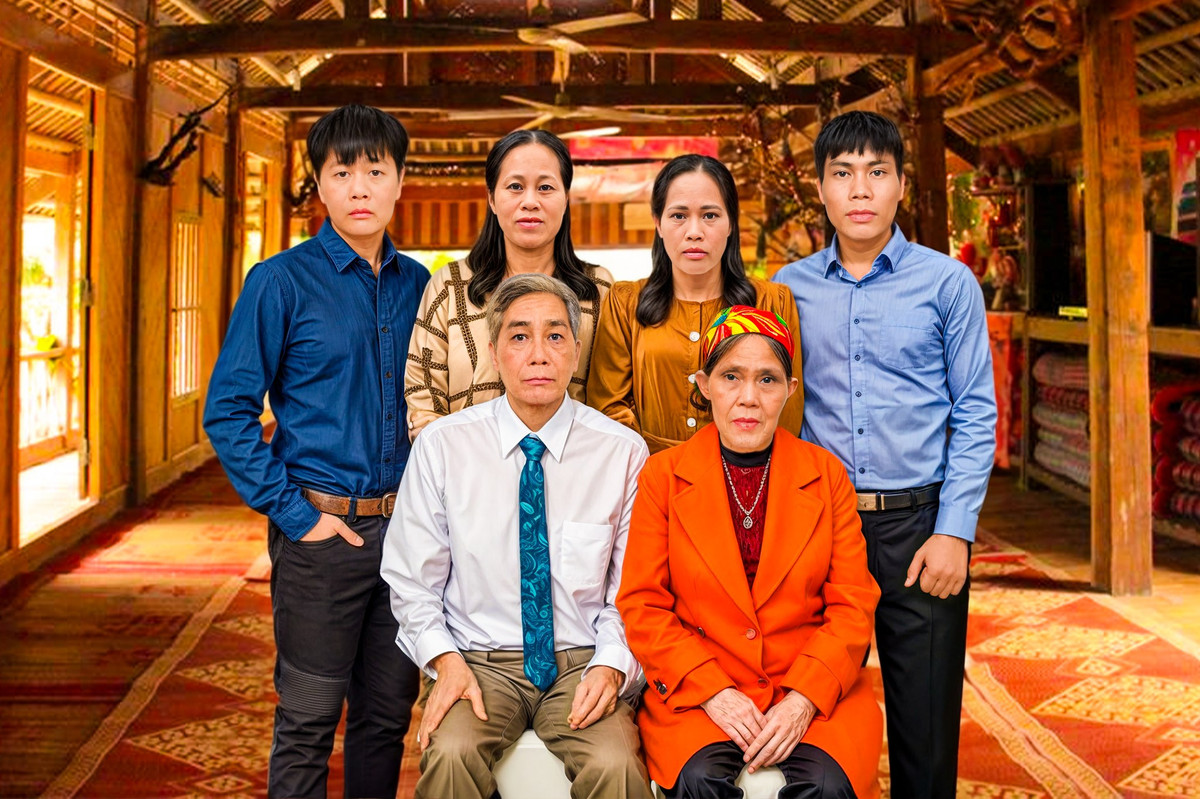 Đây là bức ảnh gia đình được phục dựng đầu tiên, do hai cậu bé Hoàng Xuân Phúc (ngoài cùng bên phải) và Hoàng Gia Bảo (thứ 2 từ trái sang) đề nghị anh Trung thực hiện.