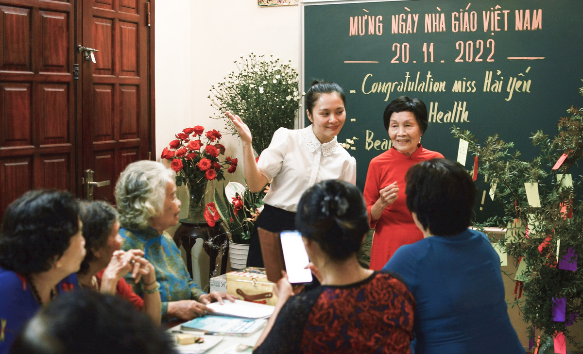 Nhân ngày Nhà giáo Việt Nam 20/11, các học viên U90 (ở phố Kim Ngưu, quận Hai Bà Trưng, Hà Nội) tổ chức buổi liên hoan cùng cô giáo Phùng Hải Yến, người phụ trách chính của lớp học đặc biệt này.