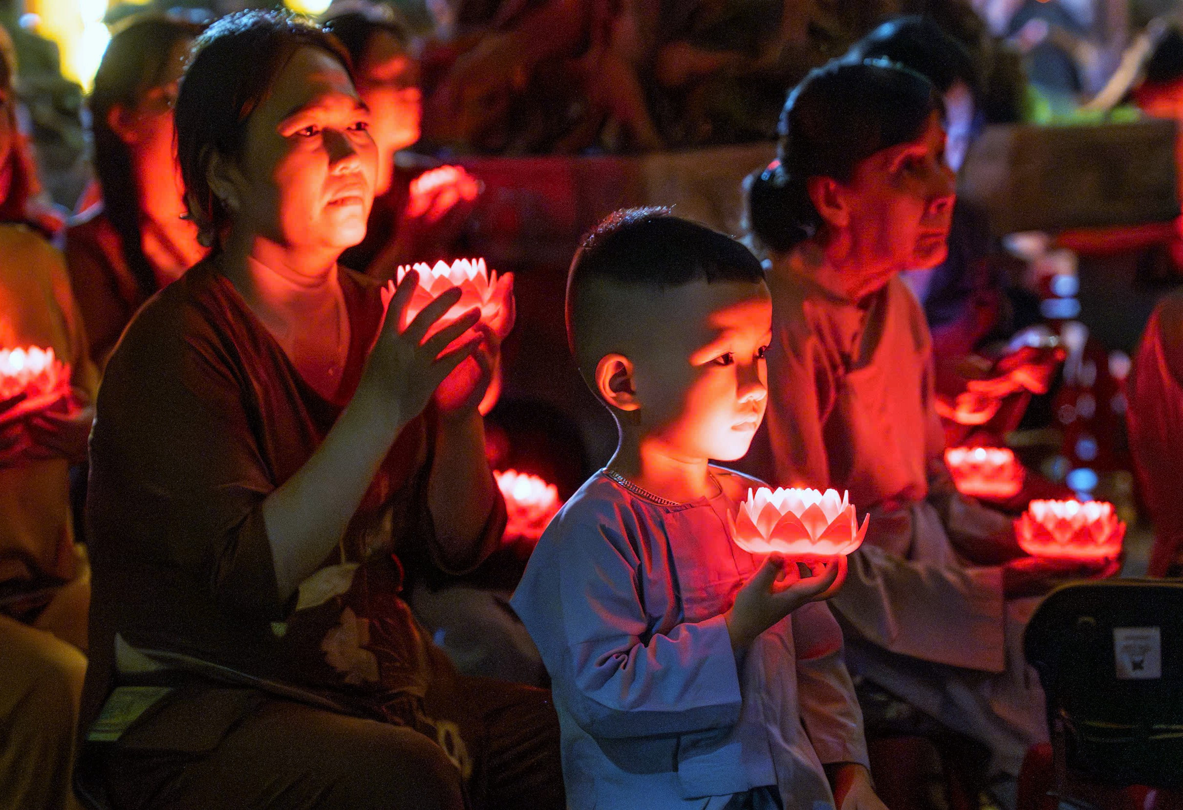 Hình ảnh trang trọng, ấm áp tại một ngôi chùa ở Gia Lai giữa đêm Rằm tháng 7.