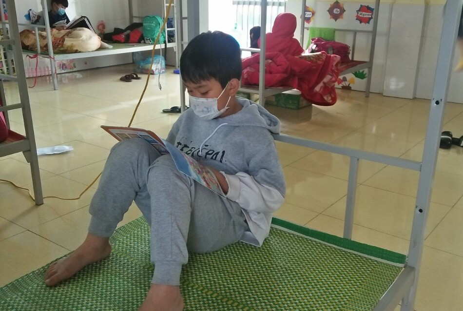Mẹ con mình phải qua vài lần kiểm tra sức khoẻ sau đó mới vào phòng. Rất may là đoàn mình được vào trường mầm non Phạm Thái. Phòng học được làm thành phòng ở, rất rộng rãi, sạch sẽ, vệ sinh khép kín, đủ mọi thứ sử dụng cho sinh hoạt hàng ngày. Ở cùng mẹ con mình còn có 12 người nữa. Trong phòng có con, bạn Bảo Trang, bạn Diệu Thanh là bé nhất nên lúc nào 3 bạn cũng được ưu tiên.