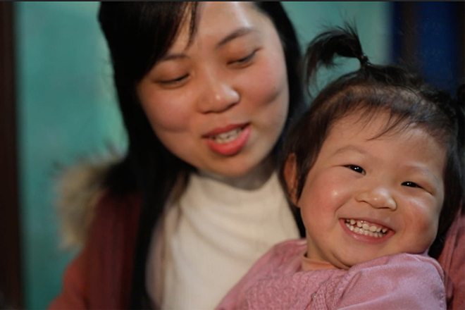 Bé Quỳnh cười tươi trong vòng tay mẹ Trang. (Ảnh: Bác sĩ cung cấp)