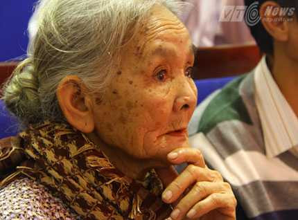 | Mẹ Huỳnh Thị Kế, mẹ liệt sỹ Nguyễn Hữu Đảng xúc động tại buổi giao lưu |