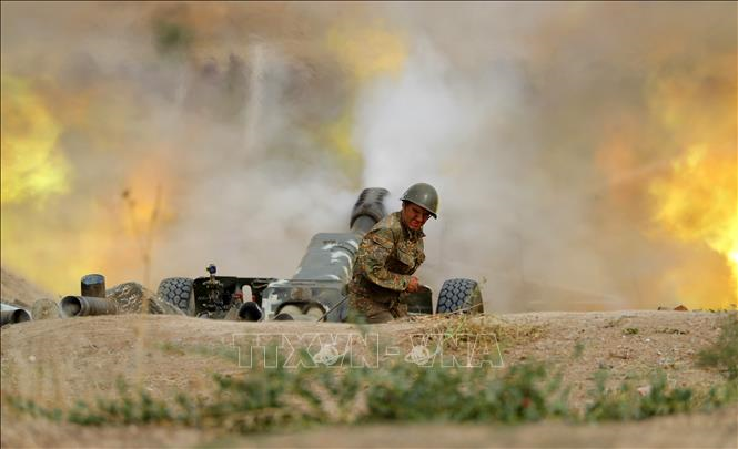 Lực lượng Armenia nã pháo về phía quân đội Azerbaijan trong cuộc giao tranh ở khu vực tranh chấp Nagorny-Karabakh ngày 28/9/2020