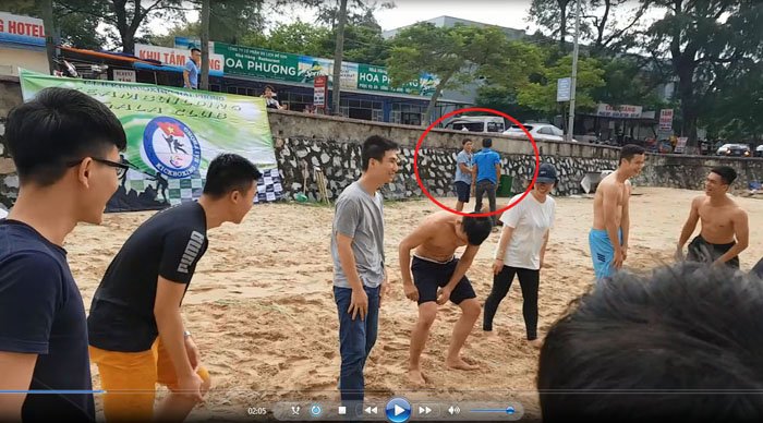 Trong khi vui chơi có một thành viên đứng quay clip, trong đó ghi được hình ảnh có 2 người đàn ông xuất hiện gần khu vực để đồ đạc của các thành viên.