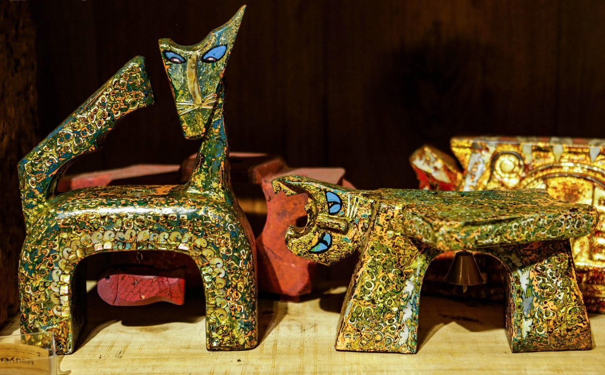 Nổi bật trong bộ sưu tập của nghệ nhân Phát là bộ 7 chiếc ghế, mỗi chiếc đều có hình dáng của linh vật mèo.