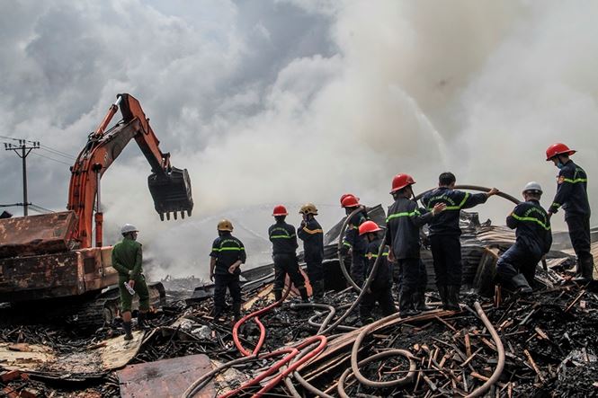 Lực lượng PCCC tại hiện trường.