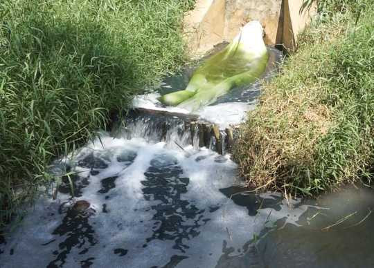 | Một hệ thống ống xả thải của Công ty Mei Sheng xả ra suối, từ suối này nước thải sẽ chảy ra hồ Đá Đen |