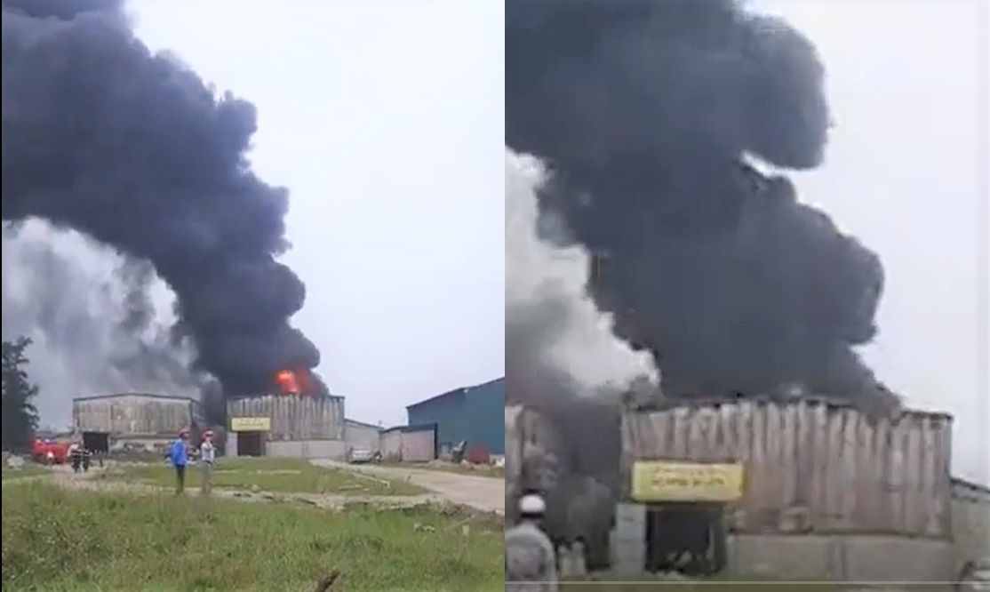 Do trong nhà xưởng chủ yếu là chất dễ cháy như xăng dầu, sơn... nên ngọn lửa nhanh chóng lan nhanh, cột khói đen kịt ngùn ngụt bốc lên cao khiến người dân hoảng sợ.