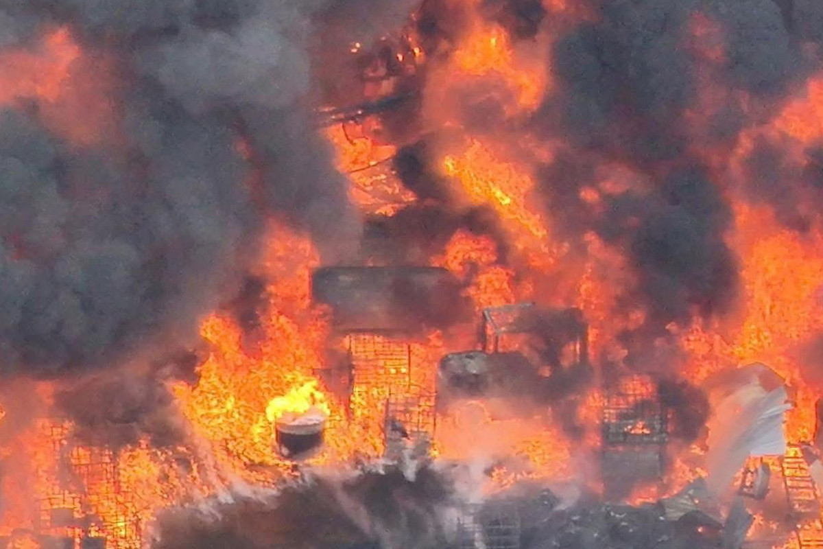 Khói đen bốc lên ngùn ngụt tại hiện trường.