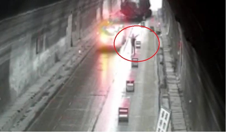 Vụ việc xảy ra tại đường hầm trên cao tốc Huyu nối Trùng Khánh và Thượng Hải, Trung Quốc. Cảnh quay do camera giám sát ghi lại cho thấy 2 xe tải chở hàng cồng kềnh mất lái, đâm vào tường và chắn toàn bộ lối đi.
