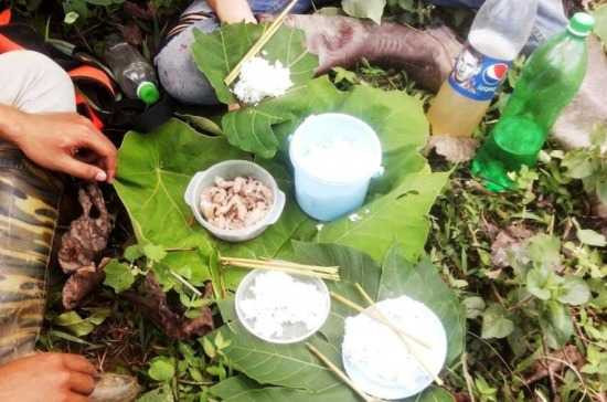 Diện như tôi thuộc “hàng thứ cấp” nên được giao cho nhiệm vụ chuẩn bị cơm nắm, muối vừng. Còn người có kinh nghiệm nhất trong đội, là người đi kiếm thức ăn làm mồi nhử: đó là các loại cây cỏ rừng, hoa quả và đặc biệt thức ăn khoái khẩu của rùa là thịt và xác động vật thối như: lòng lợn, bò, gà … Những thứ mồi bẩn này được gói kỹ trong túi ni lông.