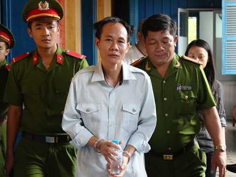 | Bị cáo Tấn (áo trắng) tại phiên phúc thẩm |