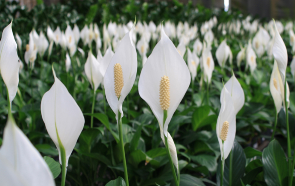 Lan Ý (tên khoa học Spathiphyllum), còn được gọi là bạch môn hay huệ hòa bình, có nguồn gốc từ khu vực nhiệt đới châu Mỹ. Cây có lá màu xanh đậm, bóng mượt, mọc thành bụi rậm rạp, rất đẹp mắt. Đặc biệt, hoa lan Ý có hình dáng độc đáo – là chiếc mo trắng tinh khôi bao quanh phần hoa thực màu vàng nhạt ở giữa, giống như ngọn nến đang cháy. Hình ảnh này gợi nên cảm giác nhẹ nhàng, tinh khiết, đầy tính biểu tượng.