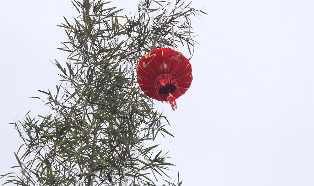 Cây nêu được dựng lên trước cổng nhà ngày Tết. (Ảnh: Trọng Tùng)