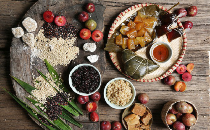 Trong ngày này, người ta thường sum họp ở nhà với gia đình. Buổi sáng sớm ngày Tết Đoan ngọ người ta ăn bánh tro, chè hạt sen, trái cây, và rượu nếp để giết sâu bọ, bệnh tật trong người. Thường lệ người ta ăn rượu nếp ngay sau khi họ ngủ dậy.