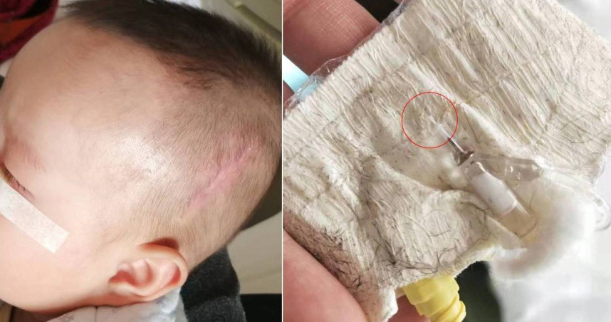 Y tá thao tác sai khiến ống luồn kim đi lạc trong đầu cậu bé 5 tháng tuổi. (Ảnh: Xiaoxiang Morning News)
