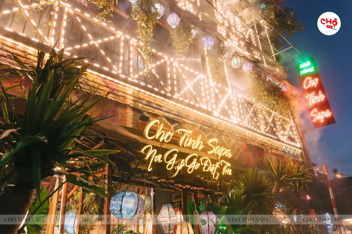 Không gian bên ngoài Nhà hàng Chợ Tình Sapa về đêm. (Ảnh: Nhà hàng Chợ tình Sapa)
