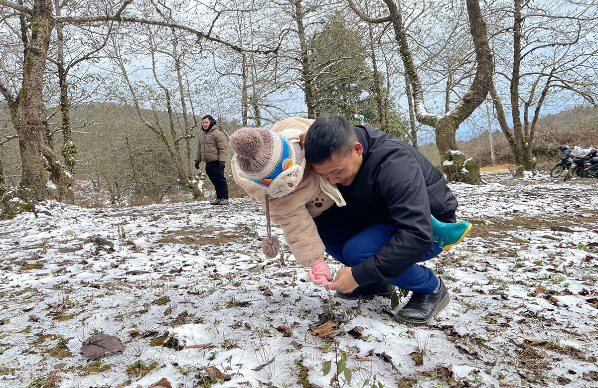 Nhiều du khách ngược núi lên Y Tý ngắm tuyết rơi.