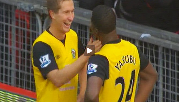 31/12/2011 09:07:00 +07:00(VTC News)-Yakubu tiếp tục khiến người hâm mộ xứ sương mù choáng với bàn thắng thứ hai vào lưới MU.