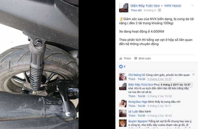 Tuy nhiên, chỉ sau hơn 2 tháng ra mắt, Yamaha NVX đã bị một khách hàng "tố" cong giảm xóc sau trên mạng xã hội. Ngay sau khi chia sẻ của vị khách này lan truyền trên mạng, rất nhiều khách hàng đang sở hữu dòng xe này cũng phát hiện ra tình trạng tương tự.