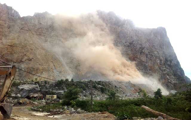 Sau tiếng nổ lớn, đá bắn tứ tung khiến nhiều nhà dân bị hư hỏng nặng, 4 người bị thương vì bị đá bắn trúng.